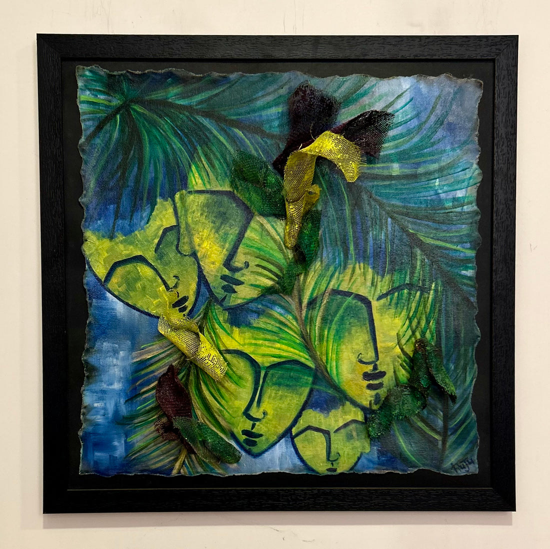 “BONDAGE IN FREEDOM” is the title that encapsulates Parikh’s recent abstract creations. In this series, she continues to explore the theme of freedom and restraint, capturing the essence of these contrasting elements through her vivid and imaginative artistry. Her works go beyond the physical medium, inviting viewers to immerse themselves in a world where emotions and expressions are beyond conventional boundaries.