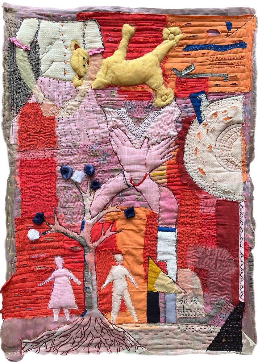 Ranita Bera combines her personal and intellectual experiences to create a portrayal of the modern world. Even though her academics have taken her to many different places, her work consistently reflects a strong sense of nostalgia for her early years, which takes the form of a celebration of shapes, colours, and the intrinsic meanings they hold. Bera’s artistic career is evidence of her close awareness of the dynamic social environment. Her embroidery artistry, based on the rustic charm of rural life, masterfully captures the essence of the times despite fast changes. Her works’ warp and weft act as a canvas on which she boldly captures the subtleties and dramatic changes of her surroundings.