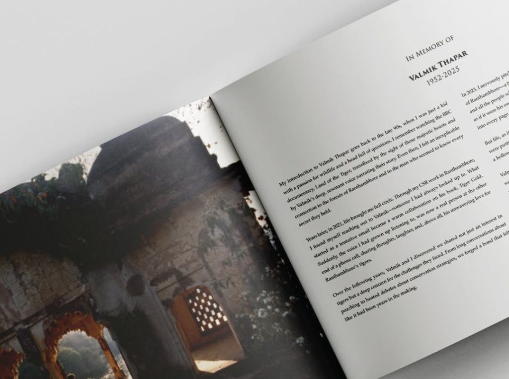 In keeping with the spirit of the project, all proceeds from the book and exhibition will be donated to Tiger Watch, the conservation charity long supported by Thapar. These contributions will fund anti-poaching programs and strengthen support for frontline forest guards—the dedicated custodians whose vigilance enables Ranthambhore’s wildlife to survive and flourish.