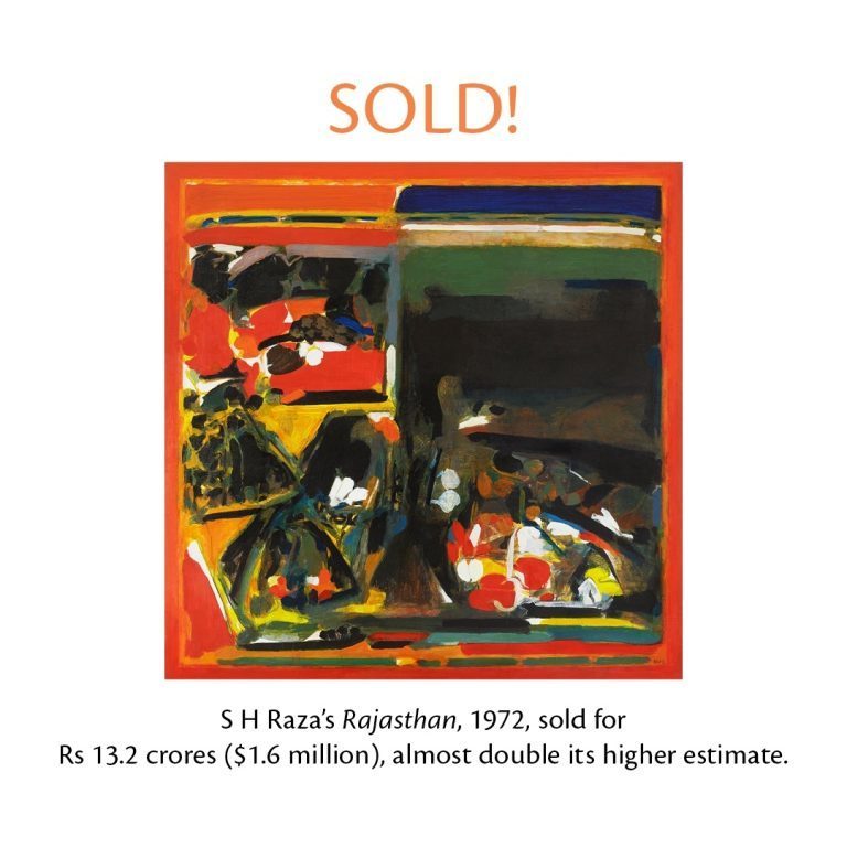 The third week of March saw the Sotheby’s auction, which featured 75 pieces totaling about USD 7 million (including premiums) or roughly Rs 57 crore. The prices for the auction’s marquee pieces by S.H. Raza and M.F. Husain far surpassed the estimates. A number of other artists, including Ram Kumar, S.K. Bakre, K.K. Hebbar, Ghulam Sheikh, Zarina, Bhupen Khakkar, Meera Mukherjee, Ganesh Haloi, Mohan Samant and Sohan Qadri, all fared well at the auction, outperforming expected estimates.