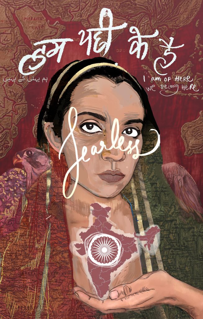 In her poster, Shilo Shiv Suleman honors the women of Shaheen Bagh — whose peaceful sit-in became a symbol of resistance against discriminatory citizenship laws. Her work reaffirms India’s constitutional pluralism and collective courage.