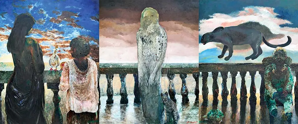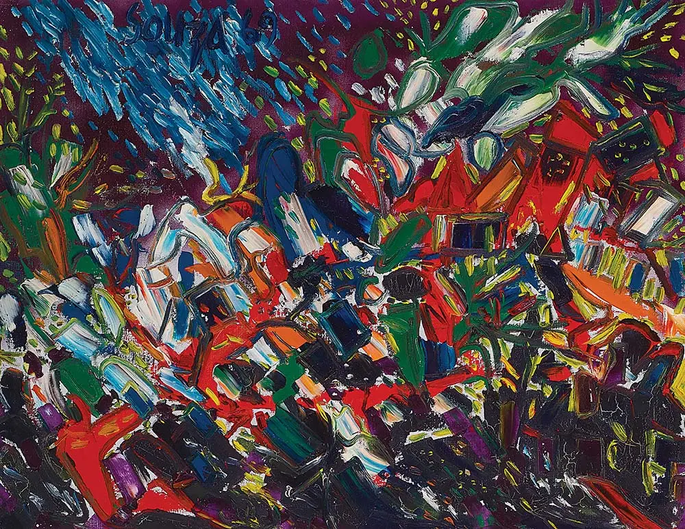 AstaGuru’s Masters Legacy, Scheduled for March 10-11, 2026 features over 70 lots by pioneers like M.F. Husain, S.H. Raza, F.N. Souza, Bikash Bhattacharjee, Krishen Khanna, Nandalal Bose, and sculptors such as Ramkinkar Baij and Himmat Shah, tracing Indian modernism from nationalist revivalism to bold abstraction. Standouts include Lot 49: Husain’s Untitled (Horses) (c. 1990, acrylic on canvas, est. ₹1.5-2 crore), with its fiery reds and jagged forms evoking tension and drive. Raza’s Kundalini (Lot 35) pulses with bindu symbolism and vibrant hues symbolizing spiritual awakening, while Bhattacharjee’s Untitled triptych (Lot 27, 1998, oil on canvas) captures dreamlike Bengal desolation through women and children on a balcony.