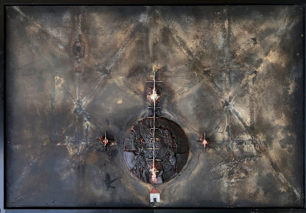 Cover Image: Jahangir Jani, Learnings 2, Mixed Media Painting on Board, 24×36 in, 2025