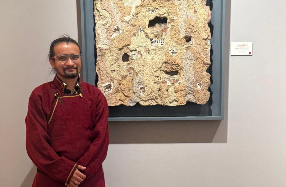 Feature image: Skarma Sonam Tashi with his award-winning artwork ‘My Homeland – 3’. (credit- reachladakh.)