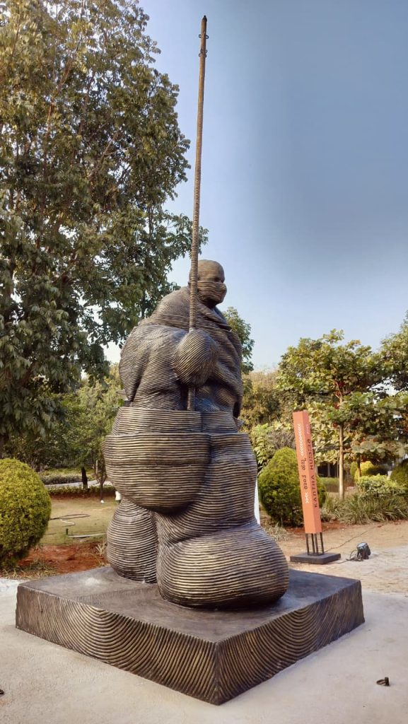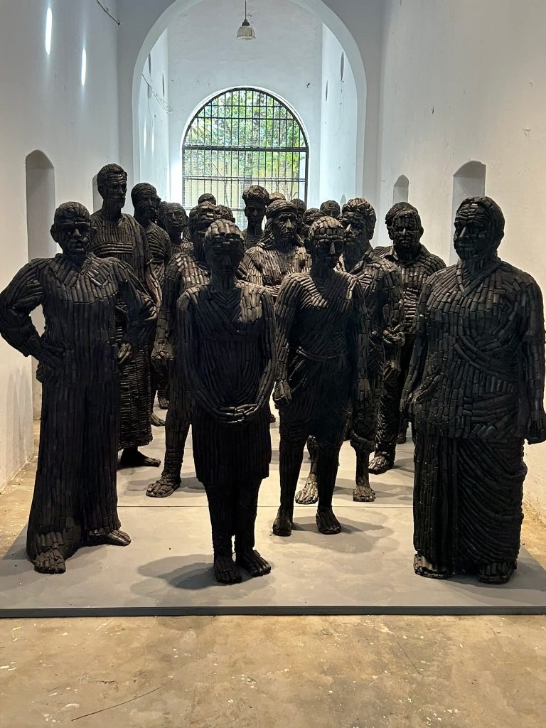 Shanthamani Muddaiah ‘s ‘Silent warrior’- a cluster of human forms standing together like a herd created a powerful sense of collective vulnerability. Their close proximity suggested survival, solidarity, and silent resistance, as if the figures were bound by shared experience rather than individuality. The gathering felt haunting, echoing the tension and entrapment.
