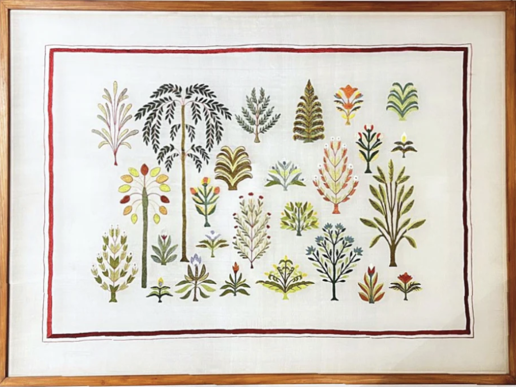 The collaboration with master artist Lalita Vakil and her atelier of women artisans anchors the project in lineage and lived knowledge. Their command over the do-rukha technique, where embroidery appears identical on both sides remains striking and fascinating. What Bridge Bharat introduces, however, is a subtle yet effective shift in material and composition. The use of a fine-count silk–cotton khadi base lends the works a certain lightness, allowing the motifs to breathe and move with a contemporary softness.