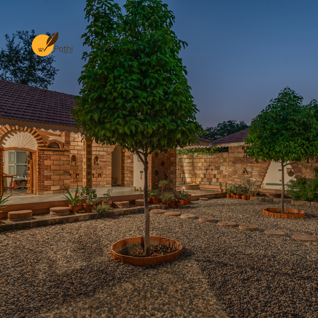The belief that architecture influences human wellbeing, as explored in Alain de Botton’s Architecture of Happiness, is reflected in Tribhuvana—the rural studio of architect Himanshu Patel in Khanderaopura village near Ahmedabad. Here, vernacular wisdom, sustainability, and emotional resonance are quietly demonstrated through space and material.