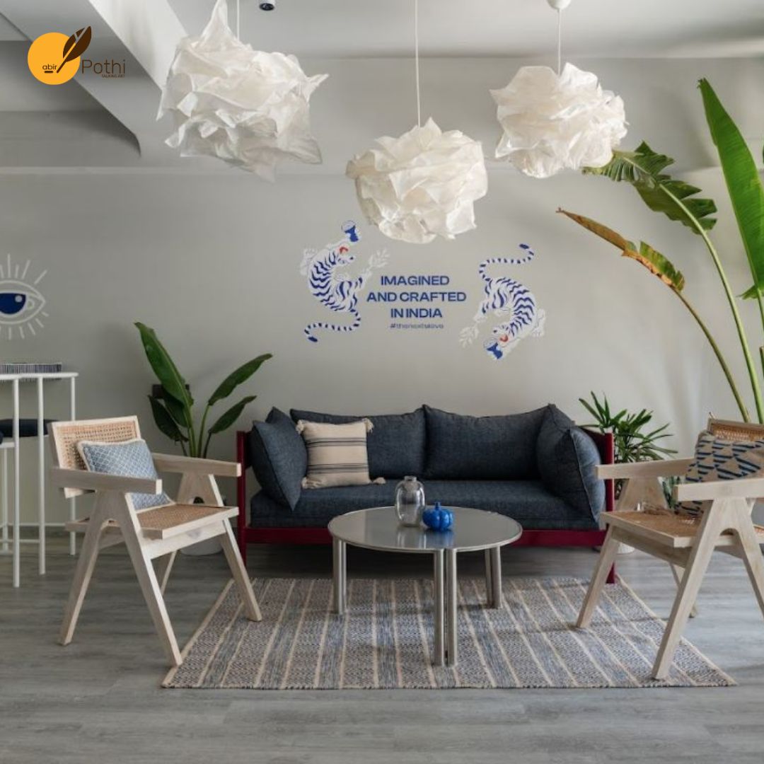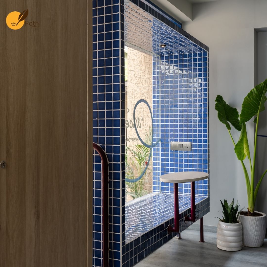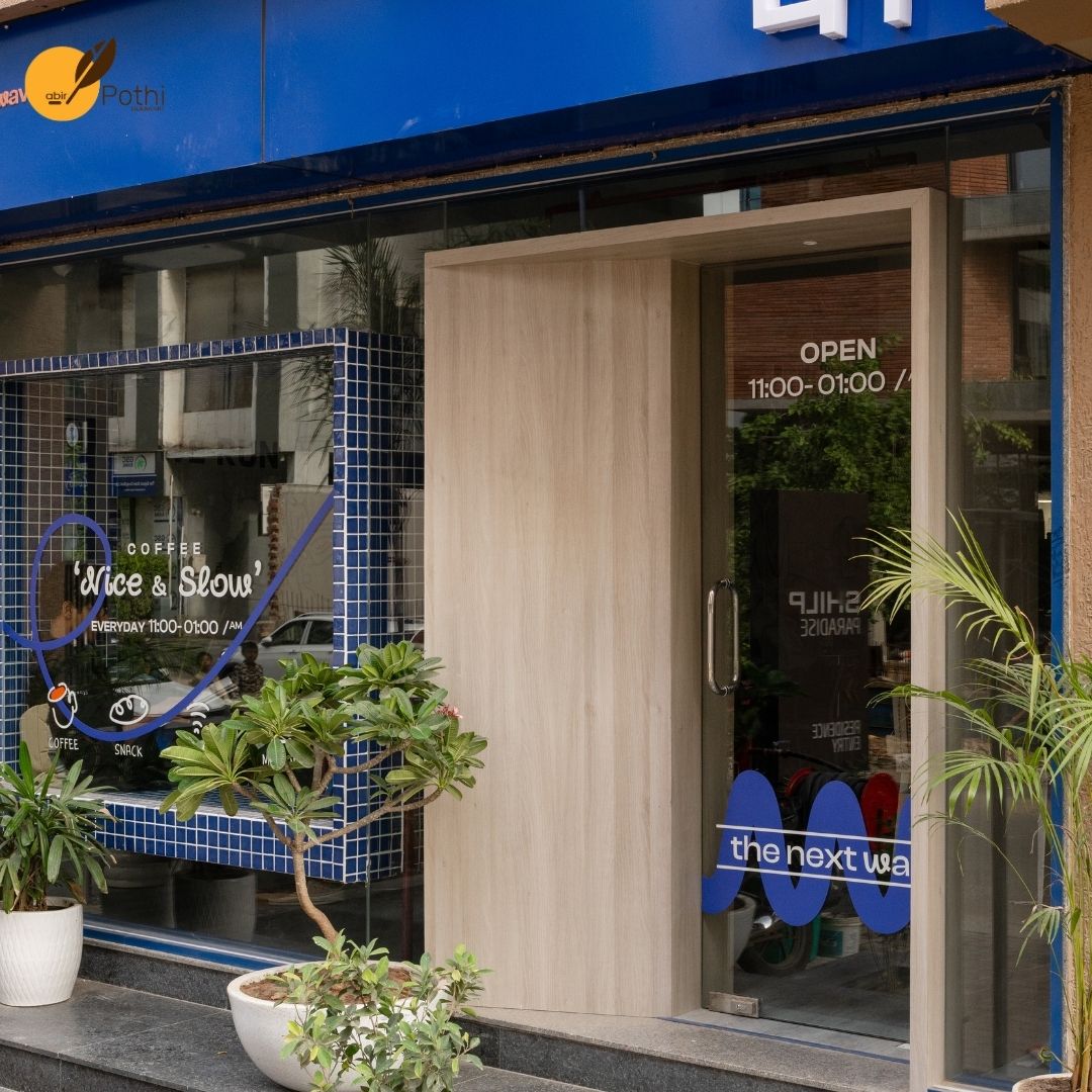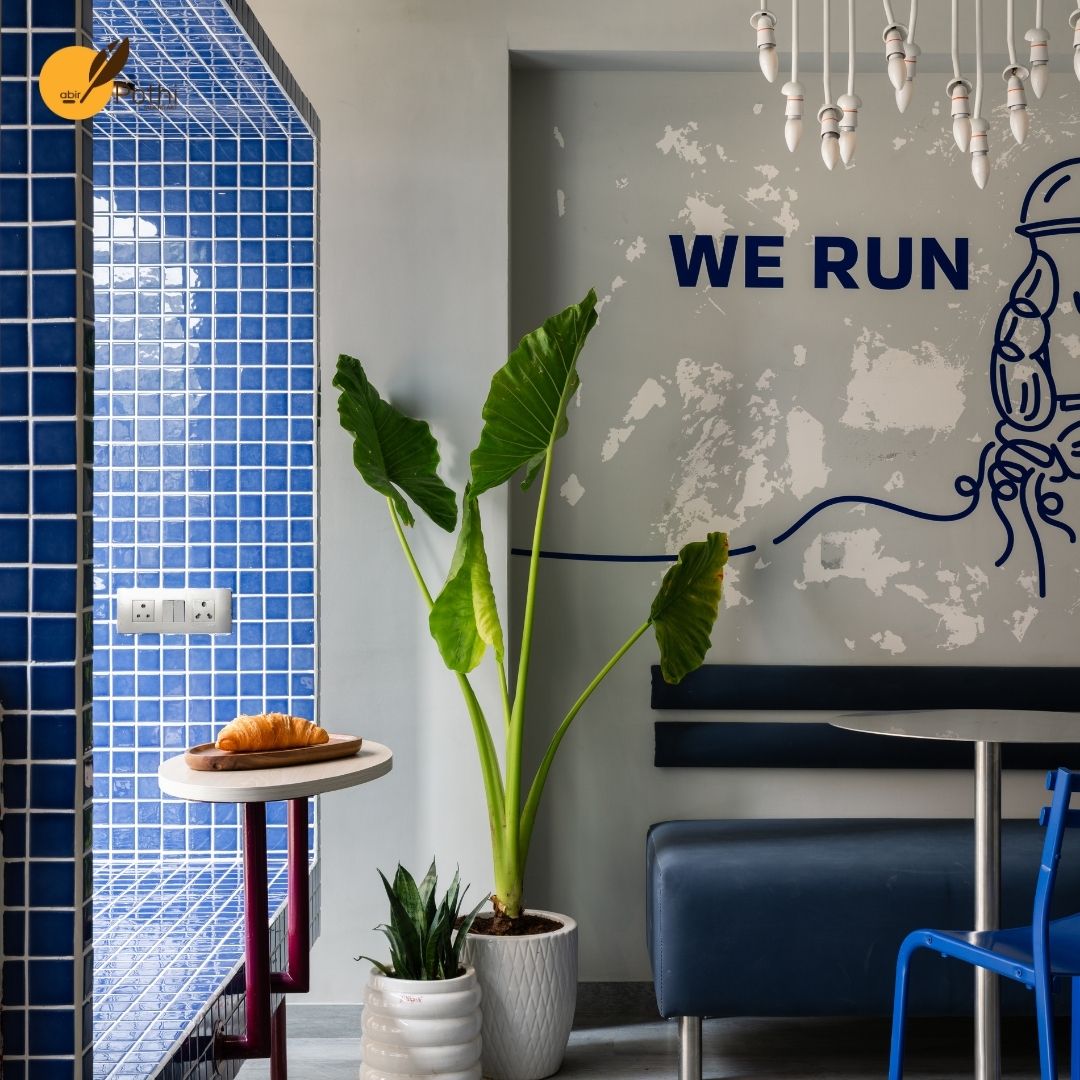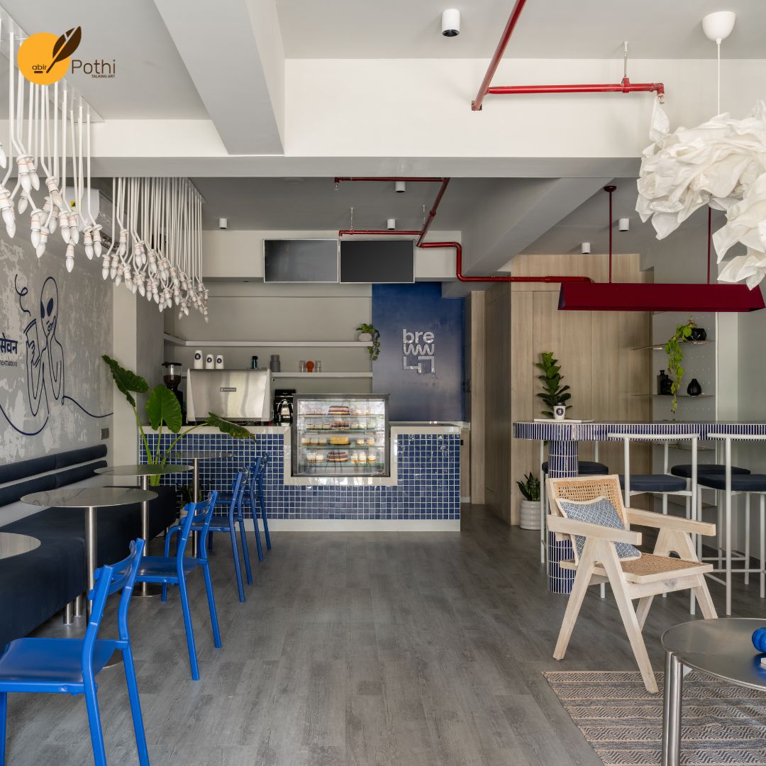 A coffee shop has been established in a posh suburban residential area of Ahmedabad. It has been designed for young people and coffee lovers, with interiors envisioned as vibrant and welcoming. A blend of modern design and playful, artistic touches has been incorporated to shape its unique atmosphere.