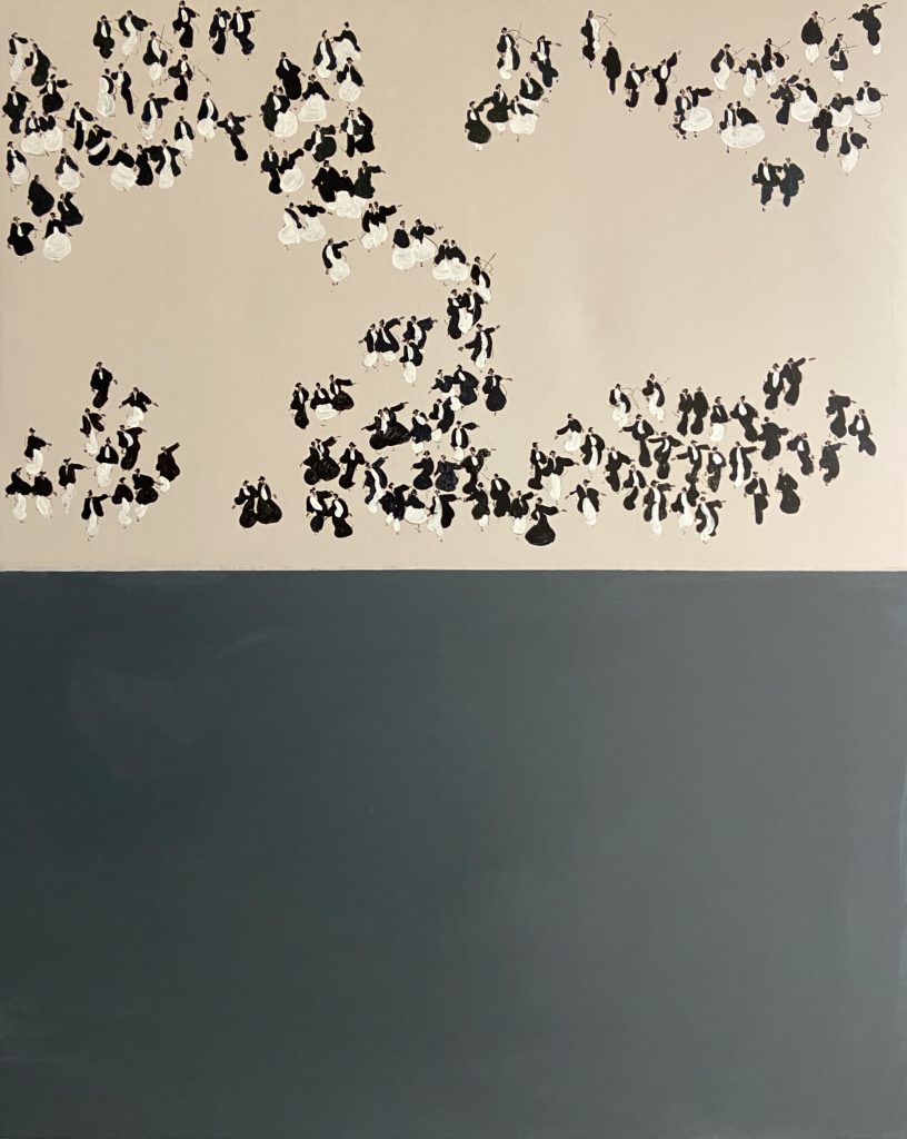 Indore-based artist Aditya Chadar explores the movement and density of urban life, capturing crowded spaces while balancing them with compositional order. His works reflect on individuality and collective identity within public settings. Having exhibited at Vadehra Art Gallery and Space 118, Chadar recently held his first solo with Cultivate Art Global at India Design 2025 and has been recognized with the Meera Kala Samman Award.