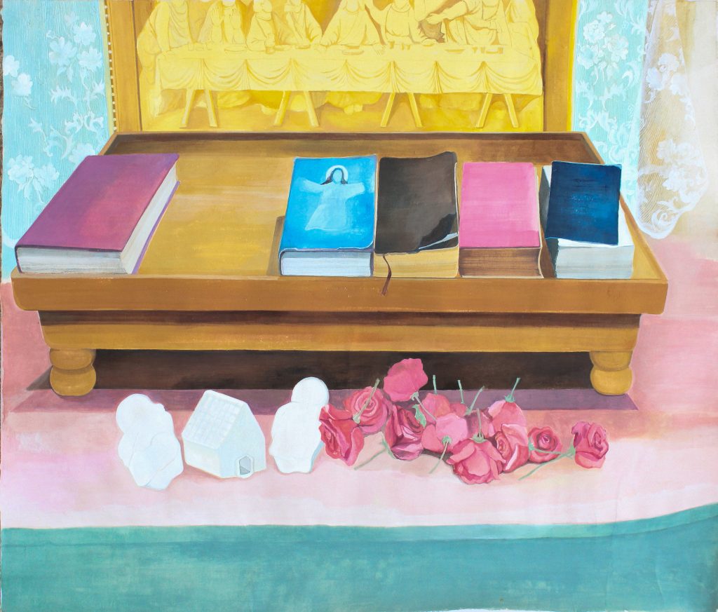 Born in 2001, Abela Ruben is among the youngest participants in the show. A recent MFA graduate from MSU Baroda, her paintings dwell on fragmented moments that blur the boundaries between stillness and motion. Drawing on art history, cinema, and lived experience, she constructs evocative compositions that invite viewers into open-ended narratives.