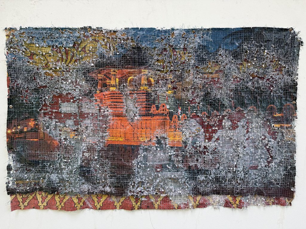 Born in 1991 in Kandy, Shironi grew up during the protracted Sri Lankan civil war, an experience that continues to shape her practice. Her work draws upon her family’s matrilineal heritage of storytelling and the intergenerational traumas of displacement, layered with her father’s belief in social justice. Through techniques such as stitching, quilting, applique, embroidery, and patchwork, she transforms found fabrics, mesh, paper, and other materials into installations that reconstruct narratives of love, memory, loss, and resilience.