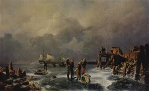 Oswald Achenbach’s work was heavily influenced by historicism and the German Romantic movement. His paintings featured scenes from the past that were imbued with a sense of grandeur and mystery, while also exploring the spiritual aspects of life. By looking back to the past, Achenbach’s work sought to capture a sense of nostalgia and reverence for bygone eras. He is best known for his landscape and seascape paintings, which often featured scenes of Italy, France, and the Netherlands. These works were characterized by their bright colours, detailed brushwork, and dramatic compositions. Achenbach is also credited with helping to popularize the genre of history paintings. He painted a number of works that depicted important historical events, such as the Battle of Bunker Hill and the Siege of Paris. He also created a number of portraits, including those of King Ludwig I of Bavaria and King George V of Hanover.