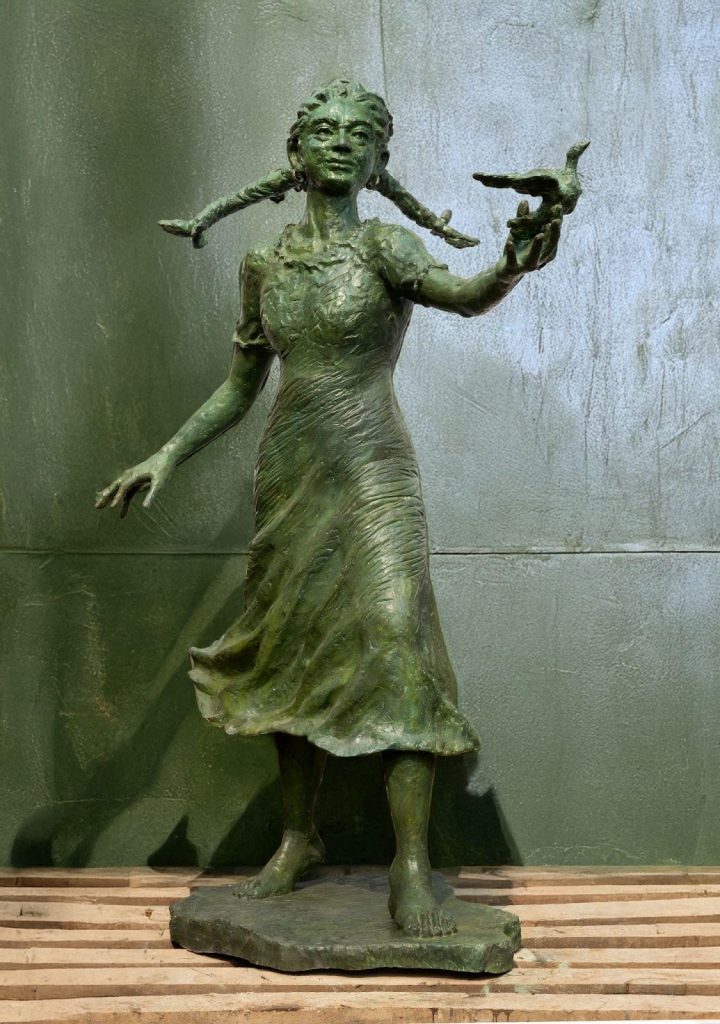 At the emotional core of the exhibition is the figure of Junjaali herself. Roy remembers her distinctly. She was twelve years old when he was nine. Untamed, restless, running through fields and wilderness. She caught ducks, pigeons, goats. Together they moved through a landscape that felt open and unbounded. Junjaali is a real person from Roy’s childhood, yet within the exhibition she becomes something more expansive.