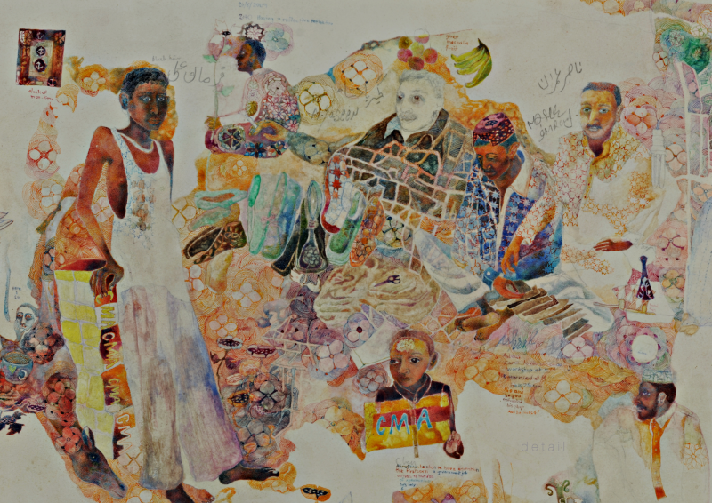 “Shanthi works inward, using tactile, intimate forms to explore the body as a vessel of emotional and ancestral memory,” says Tunty Chauhan. “Michal works outward, mapping lived journeys and fleeting encounters through her travelling scrolls. One reveals the quiet architecture of interior experience; the other traces movement across the world. Together, they show that identity is not static but a continual negotiation—an intimate terrain shaped by place, memory, and motion.”