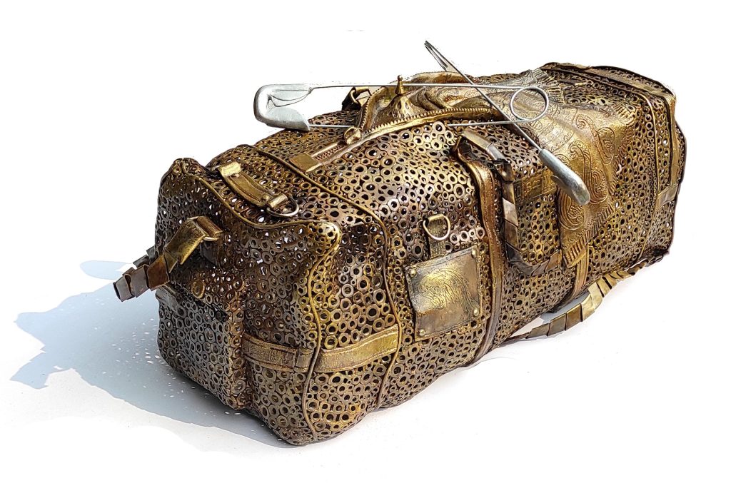 The artist shared his process “I work more with brass, I used nuts for this series of work. I started with decorative pieces, and steadily I started working on aesthetics and concept-based works. The things that haunt me in society and make me think about those hidden aspects become my inspiration for the works. The name of this exhibition is Perception Unfold because it allows one to understand and explore the works in a particular way. There is no objective meaning to my works, the subject relates to everyone and thus allows folks to inquire about it freely. My work consists of aspects of politics, society, and my journey from Kolkata to Delhi. Sometimes, my memories participate in my works as well.” Sincerity, dedication, and commitment are the pillars of his growth over time. His approach of being perfect and learning every day opens new doors for him throughout his journey.