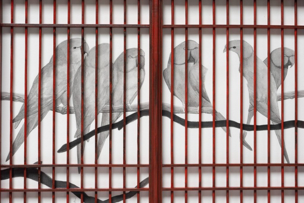 The curatorial concept explores the gallery space itself as an active participant in the exhibition, with architecture functioning not as a backdrop but as a collaborator. Dave writes that “the visitor in this exhibition is not passive. They cross thresholds, voids, and suspensions,” engaging with works that range from Sudipta Das’s fragile paper figures to Chandan Bez Baruah’s carved landscapes and Riyas Komu’s politically charged figuration.