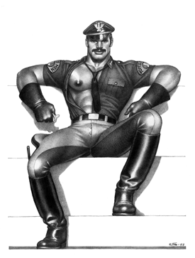 Rugged masculinity has always been attached to the professions of sailors, bikers, soldiers, and construction workers. These were predominately heteronormative domains. The recurring idea of a gay male as a simple ‘pansy’ was about to be dismantled. Attaching these tropes to his subjects shook up the notion of heterosexuality. This heterosexuality was as sacred to the ‘straights’ as patriotism. Therefore, Laaksonen’s drawings almost felt like a betrayal to them, albeit a comical situation to the queers.