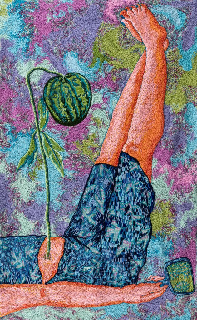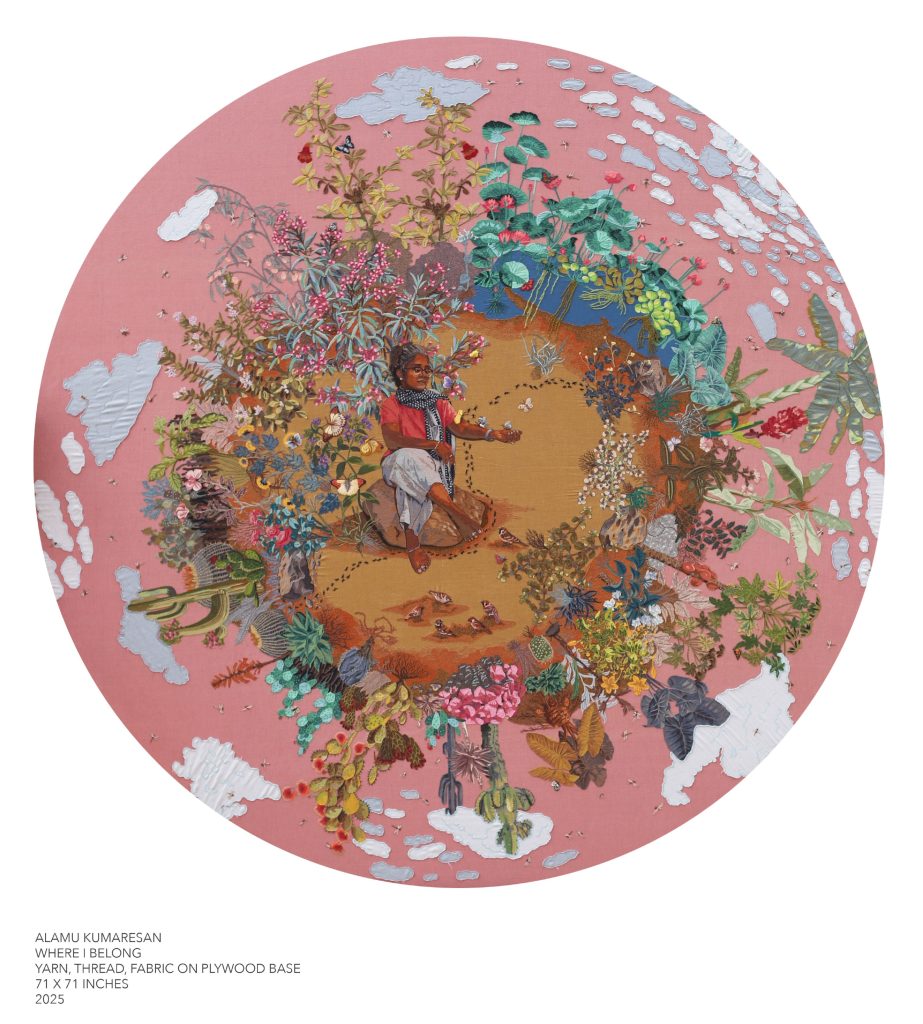 Anupa Mehta Contemporary Art in Worli presents Garden of Memory – Alamu Kumaresan. The artist explores selfhood, memory and belonging, dwelling on aspects of the familiar and comfortable using the tactile, durational process of embroidery on textile.