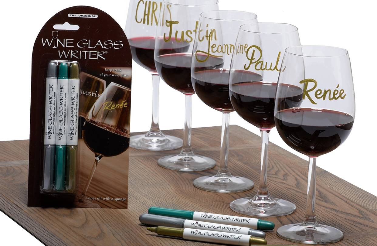 The Wine Glass Markers are excellent if you wish to gift a bottle of wine to your friend. Write congratulatory messages on them. You may even write your friend’s name on their respective wine glasses. These glass paint markers come in five metallic shades (gold, silver, purple, red, and green). These glass markers are erasable as they use a water-based ink. However, after using them, let it rest for a few minutes and then pour the wine. Try not to touch the ink as even the slightest touch may remove it.