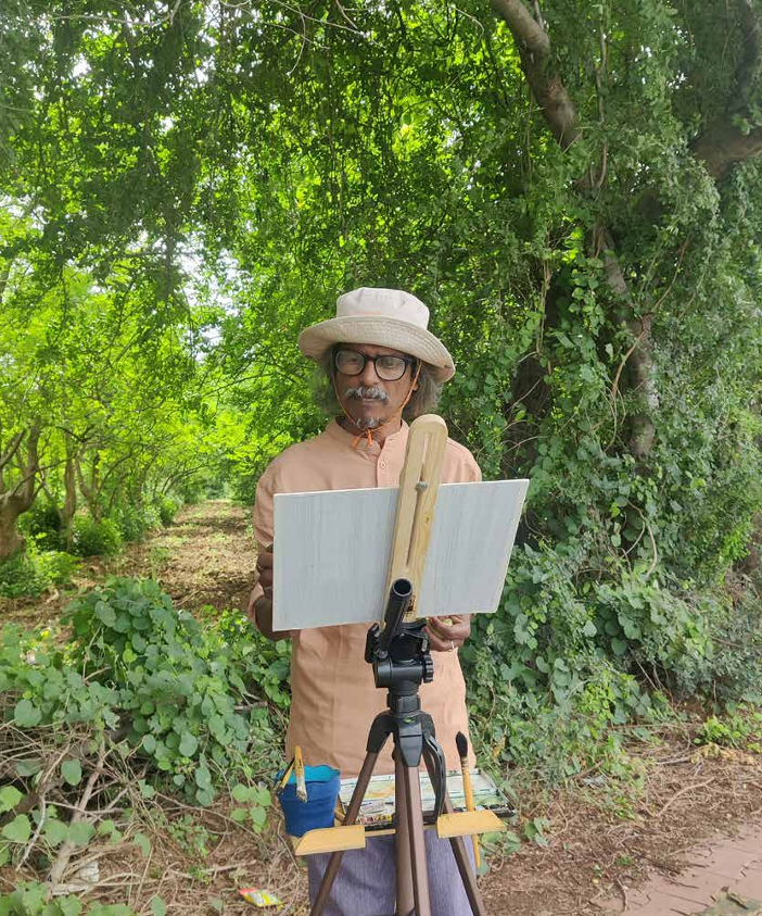 Born in Trivandrum in 1966, Natesan pursued formal training at the College of Fine Arts, Trivandrum, before earning a Master’s Degree in Printmaking from M.S. University, Baroda, in 1989. His style marries hyperrealism with surreal elements, paying meticulous attention to light, shadow, and atmosphere—hallmarks that echo the European Impressionist masters who inspire him.