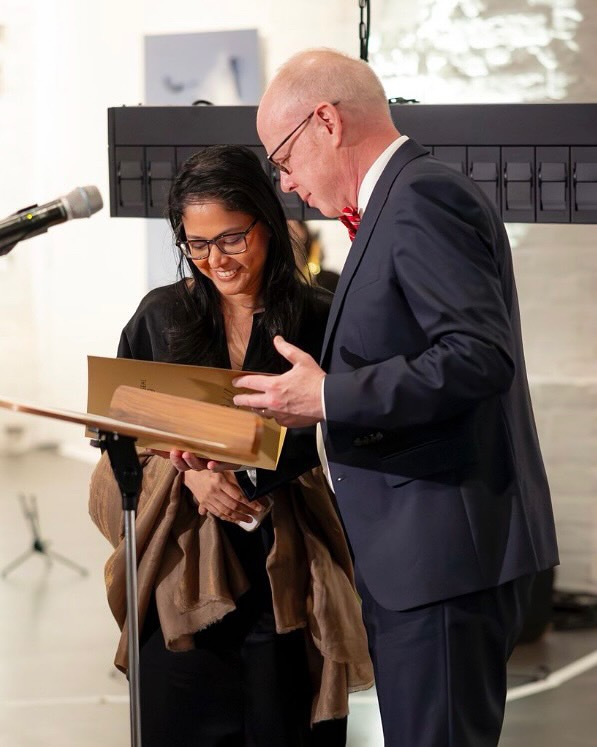 The international jury, composed of directors from renowned art institutions including Dr. Anette Hüsch of Kunsthalle zu Kiel, Prof. Bonaventure Soh Bejeng Ndikung of Haus der Kulturen der Welt Berlin, and Dr. Florence Thurmes of Kunstsammlungen Chemnitz, recognised Gupta for her sensitive handling of political issues and her wide-ranging use of media. Language and its inherent power form a central focus of her artistic work.