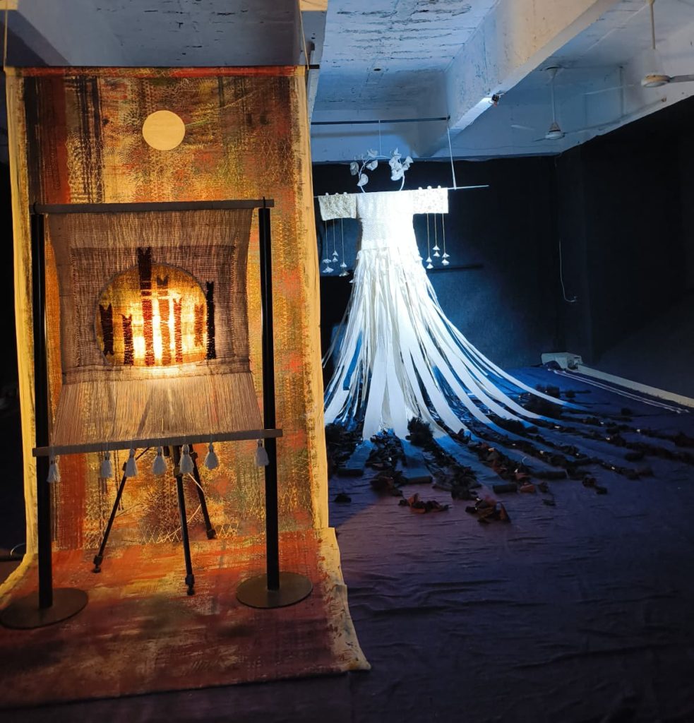 As part of Ahmedabad Cultural Week, the Hutheesing Visual Art Centre presents SOUL – The Song of Beauty and Eternity, a textile installation conceptualised and curated by Niharika Shah. The exhibition brings together artists Prof. Amar Dutta and Barsha Dutta in a father–daughter collaboration that embodies reflection, memory, and rediscovery through textile art.