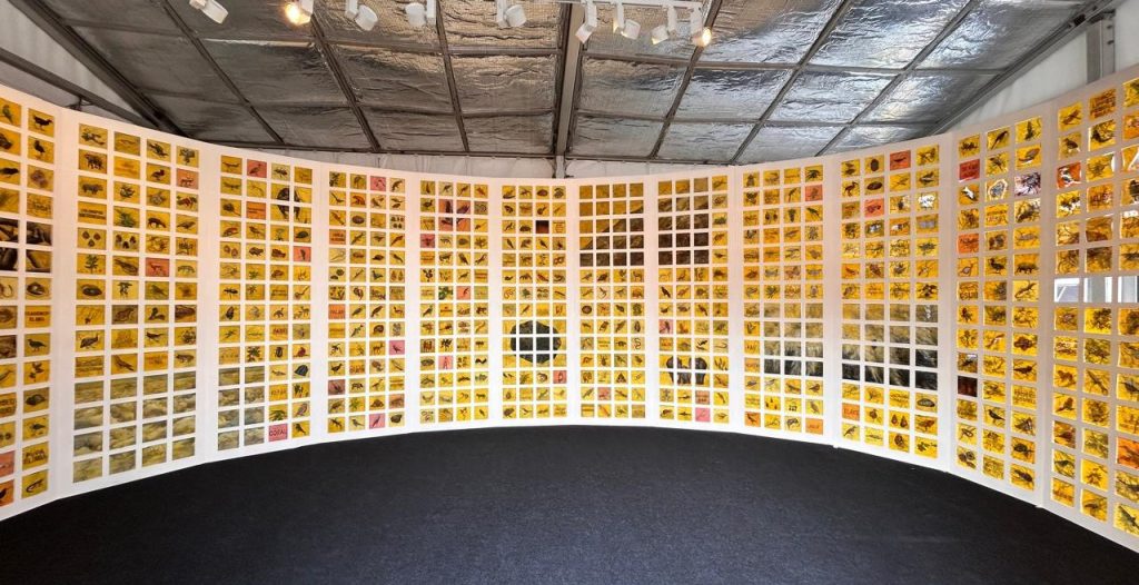 The installation, which depicts animals and plants at peril and spans over 900 endangered species, painted on pesticide-dipped rice paper, makes the magnitude and accumulation of what is vanishing clear. It consists of square panels with rice paper, laser dots, and stubble burning ash that represent the innumerable deaths of all animals, including humans. “When we consider it, extinction is simply a word. However, these are memories that no longer exist. “It is not just an archive of extinct species; it is an archive of how we are still ruining things for everyone”, Singh told PTI. Curated by Srinivas Aditya Mopidevi, this exhibition is on display at the India Art Fair’s outdoor section.