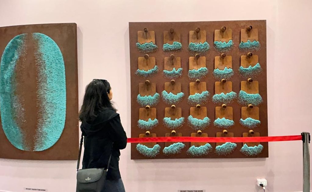 Poorvesh Patel, a Gujarat-based artist, is trying, through his very abstract art practice, to trace the tremors of the Earth and heal the wounds humans have inflicted on it. ‘Human settlement began not with conquest, but with listening’ is the vital message he is trying to convey through these artworks. However, the message we need to find is through a meticulous engagement with the artworks exhibited at the India Art Fair. It is noteworthy that the artworks Poorvesh presents demand a very nuanced engagement from the viewer. The works presented by Poorvesh at Dhi Art Space (Booth no: L04) are a magnificent expression of art, its ambiguity, and the beauty of its abstraction.