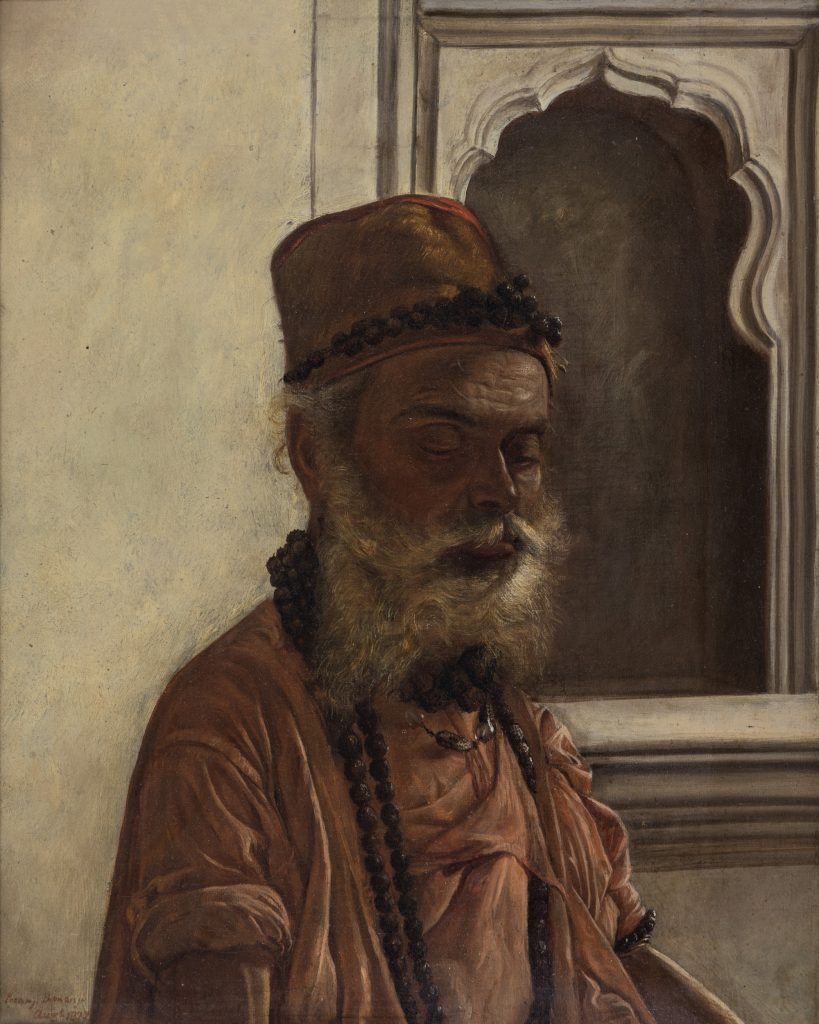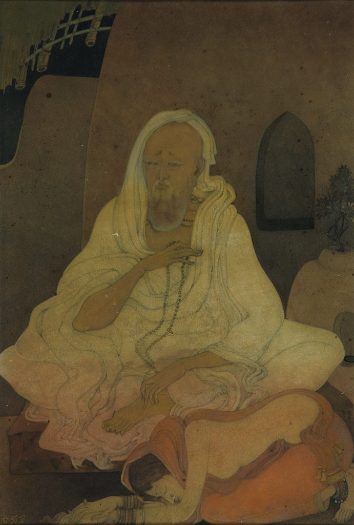 The exhibition traverses a wide historical and spiritual landscape, from Jainism, Buddhism, Shaivism, Vaishnavism, to Islamic and Sufi traditions, revealing the pluralistic nature of ascetic figures. It presents ascetics not only in their conventional mystic roles but also highlights interpretations that challenge or reimagine established norms. Works range from colonial-era depictions laden with exoticism by artists like Marius Bauer and William Daniell, to modernist portrayals by Bikash Bhattacharjee, M. A. R. Chughtai, and Bireswar Sen, each bringing unique artistic vocabularies to the theme.