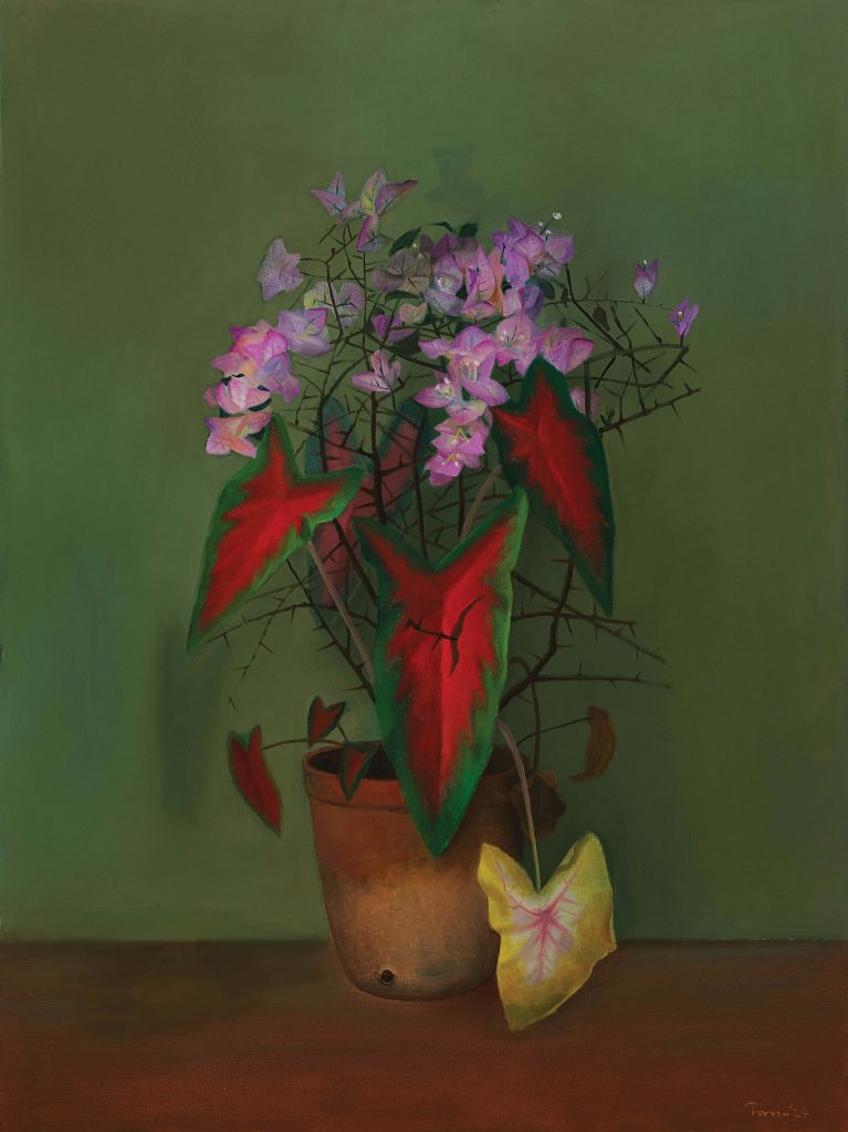 Influenced by literature, humanist philosophy, and social engagement, Vattakuzhy’s practice is rooted in a deep empathy. His restrained artistic language meets the rigour of Renaissance realism with subtle surrealist undertones, infused with the intimate tranquility of Kerala’s domestic worlds.