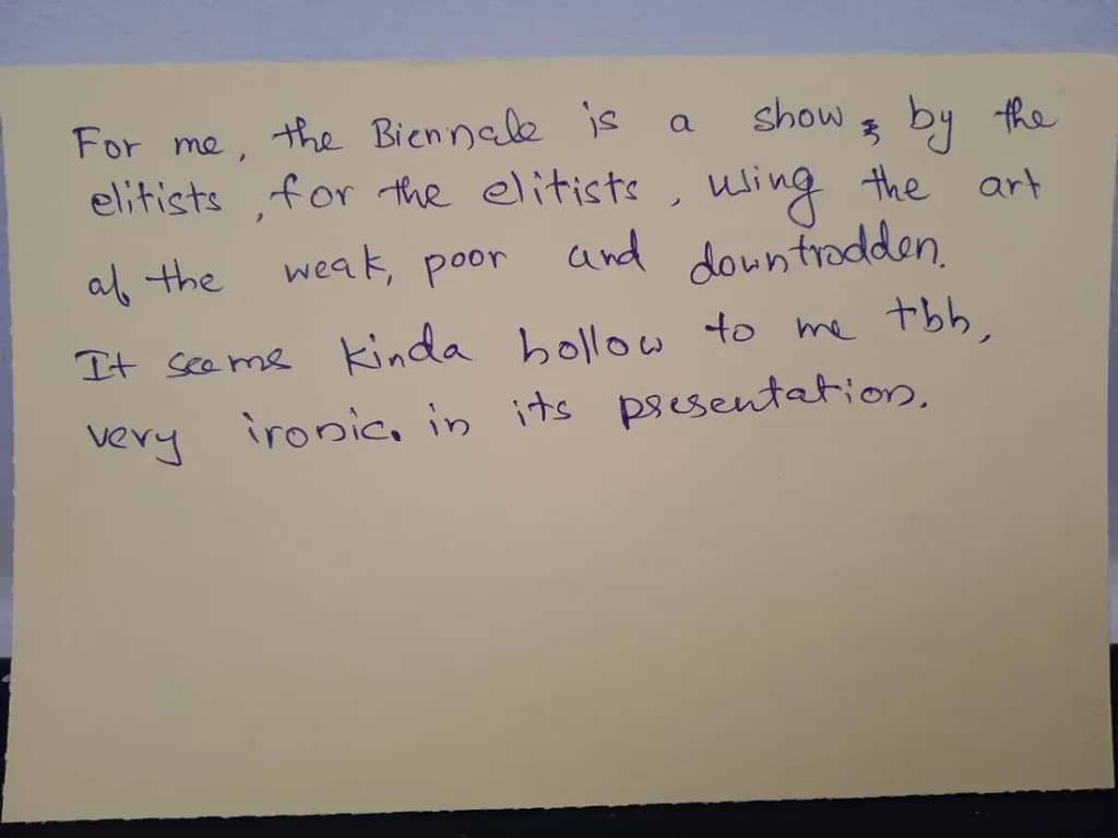 The letter above is also written in the Kochi Muziris Biennale, which boasts of being able to reach out to the local audience. In that letter, it is clear how elite it is, the language the Biennale presents in the name of cosmopolitanism. That elite space is created by the audience who come to see the Biennale; that is how that language is completed.