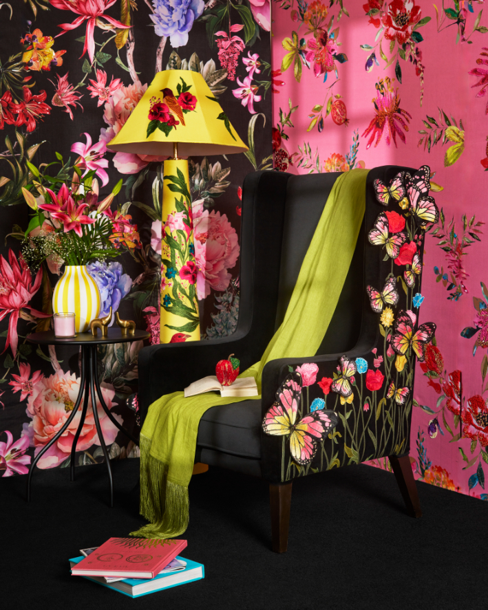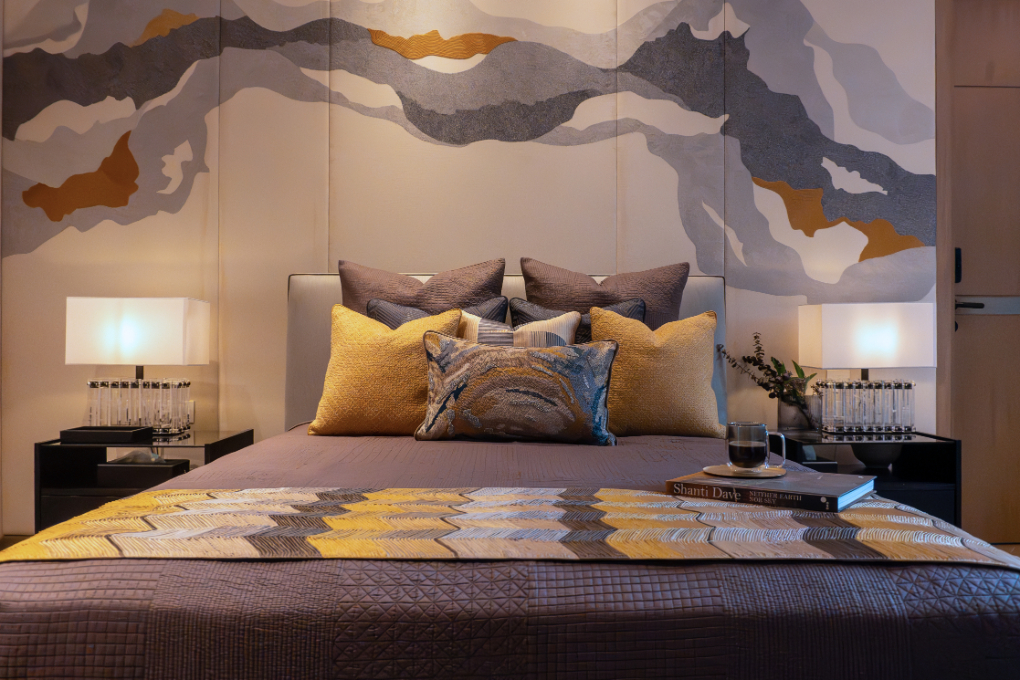 Milaaya Interiors, founded by Gayatri Khanna, incorporates couture-quality embroidery into home design. The studio presents custom swatches, fabric panels, and embroidered wall coverings with geometric, tropical, and architectural themes at India Design ID 2026. From walls and ceilings to furniture and accents, these pieces transcend the lines between surface and sculpture, establishing textile artistry as a transformational spatial instrument.