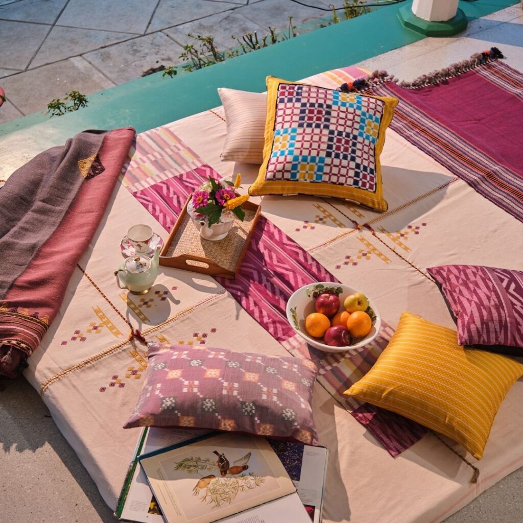 These six studios are united not just by their artistry but also by the idea that handicrafts and textiles influence how we use space. Their works offer material narratives steeped in legacy, tactile richness that invites touch and intimacy, cultural continuity reinterpreted for contemporary living, and human-centred design rooted in artisans’ abilities, whether in rugs, embroidery, handwoven fabrics, or knotted carpets.