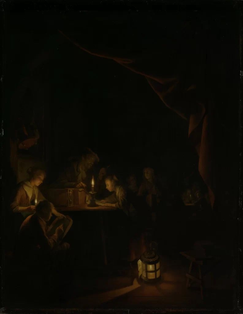 Another famous Gerrit Dou paintings is “The Night School,” which depicts a group of students studying by candlelight in a dimly lit room. The painting is a marvel of technical skill, with every detail of the scene carefully rendered, from the books and papers on the table to the expressions on the students’ faces. The use of light in the painting is particularly impressive, with the candlelight casting a warm glow on the faces of the students and creating deep shadows in the corners of the room.